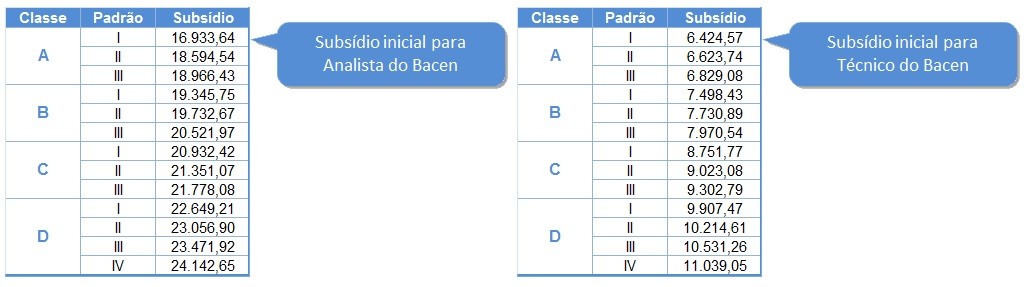 O subsídio inicial da Carreira de Analista do Bacen – como é conhecido o Banco Central do Brasil – em 2017, é de R$ 16.933,64. O ingresso no Banco Central é classificado na “Categoria A” e “Padrão I”.