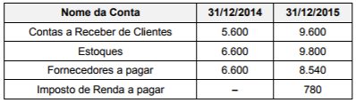 Sabendo que as despesas financeiras contabilizadas no resultado de 2015 não foram pagas, o valor correspondente ao Caixa