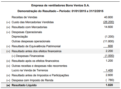 45. A Demonstração do Resultado do ano de 2015 da empresa de ventiladores Bons Ventos S.A. é apresentada abaixo: