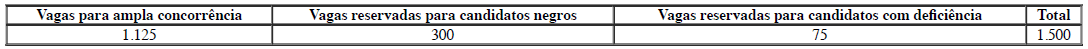 Dessa forma, são 300 vagas reservadas para candidatos negros.