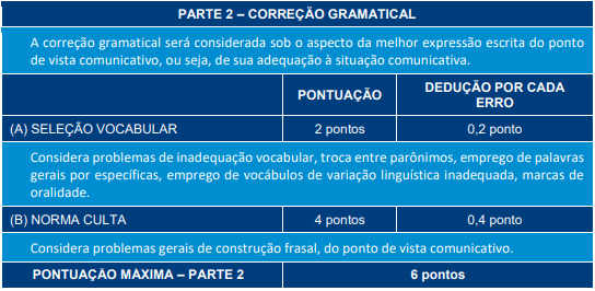 Além disso, nota total estabelecida pelos critérios descritos ainda será deduzido 0,5 ponto para cada linha completa não escrita, considerando o mínimo de linhas exigido (15 linhas), e deduzido 0,2 ponto para cada linha completa excedente ao máximo (20 linhas).