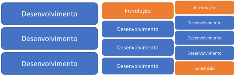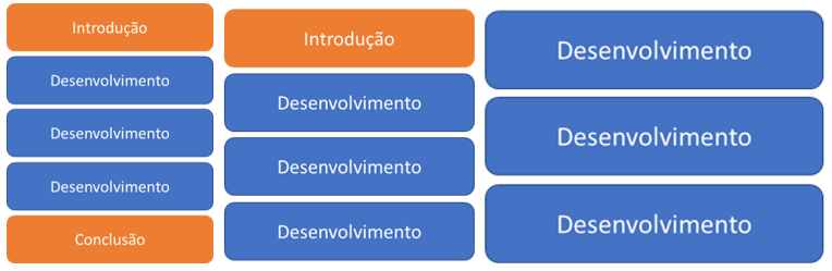 Essa estrutura vale tanto para as questões de Redação quanto para as de questão-problema, uma vez que o foco da banca (cerca de 95% ou mais da nota) está no conteúdo, e não na estrutura formal do texto. Como Introdução e Conclusão não trazem conteúdo, eles podem ser dispensados.