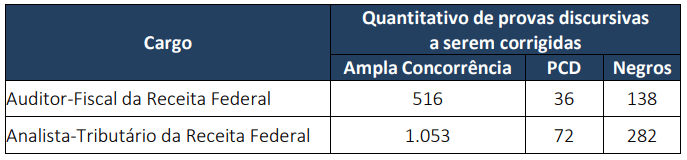 Somente serão corrigidas as Provas Discursivas dos candidatos que forem aprovados e classificados na Prova Objetiva no quantitativo de 3 (três) vezes o número de vagas para cada cargo, respeitados os empates na última posição: