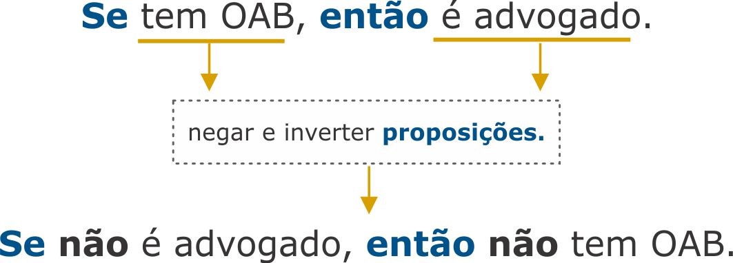 Resolver esta questão consiste em aplicar a contra-positiva para determinar proposição equivalente para “se tem OAB, então é advogado”. Para tal, partimos da negação de “é advogado” para obter a negação de “tem OAB”. Ou seja: