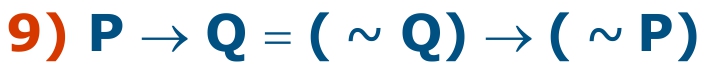 Da equivalência apresentada em (7) podemos deduzir outra propriedade que vem sendo muito cobrada recentemente. Para tal, basta trocar, em P -> Q = ~P ou Q, a proposição P pela sua negação. Veja: