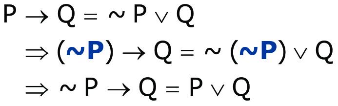 Ficaria assim: a ∨ b = ~a → b = ~b → a