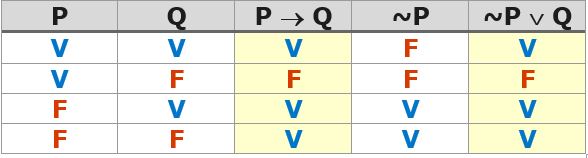 Para confirmar, basta lembrar da tabela-verdade de P -> Q e construir a de ~P ou Q. Para a primeira, lembra que é falsa em apenas uma ocasião (P é verdadeira e Q falsa):