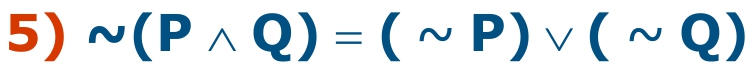 As importantíssimas relações de De Morgan tratam, em última análise, da negação de proposições lógicas compostas. Mais especificamente, da equivalência para a negação da conjunção e da equivalência para a disjunção de proposições simples: