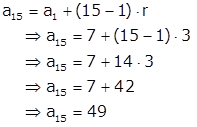Na fórmula, n corresponde à quantidade de termos que somaremos e, no contexto deste exercício, consideraremos n = 15. Porém, antes de determinar S15, determinaremos o 15º termo da sequência substituindo n = 15 em