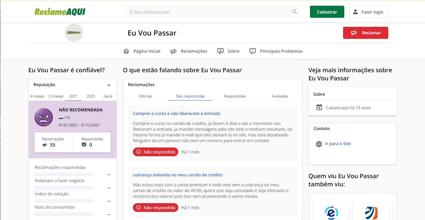- Não recomendada no Reclame Aqui, com nenhuma das reclamações respondidas.