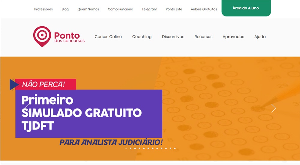 - Possui seção de notícias sobre concursos e dicas de estudos.