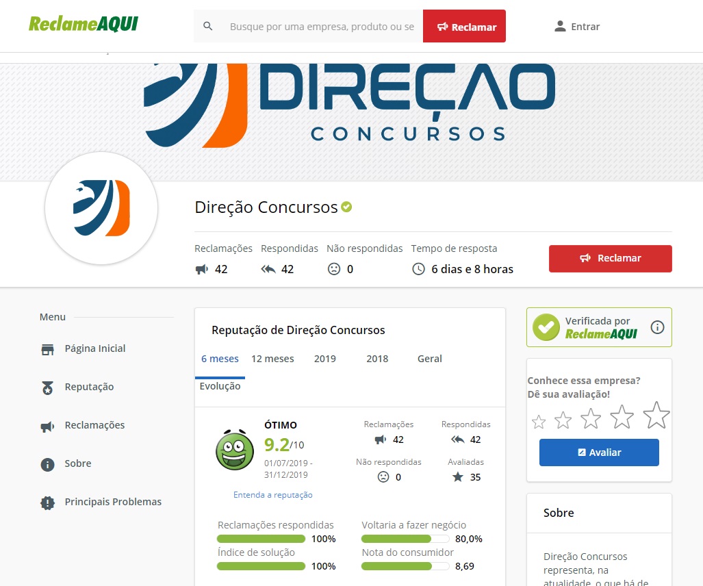 - Nota 9,2 no Reclame Aqui, 42 solicitações de clientes respondidas, com 100% de resolução de problemas. Além disso, 80% dos consumidores indicou que voltaria a fazer negócios com a empresa.