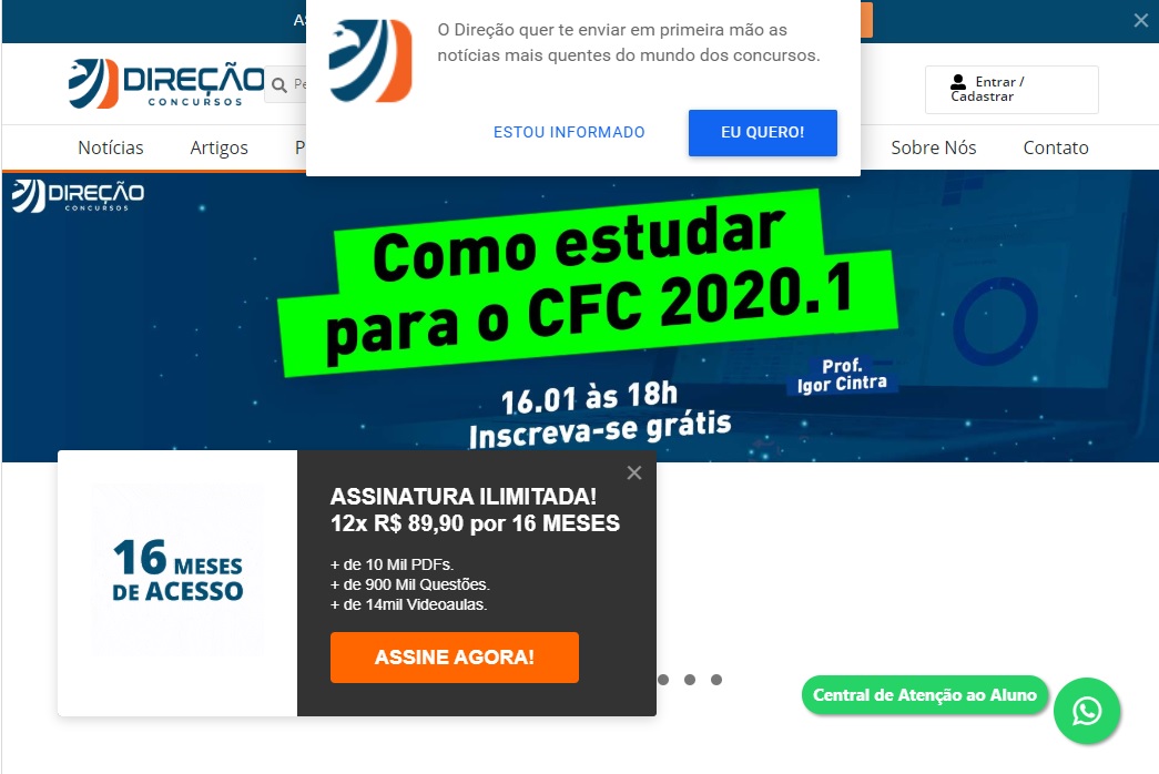 - Possui produtos separados por concursos. Não possui assinatura para acesso a todo conteúdo do site.