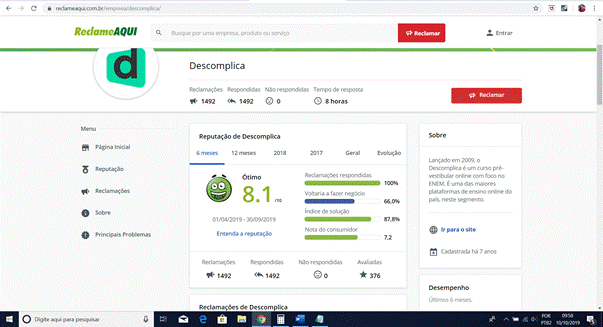 - Nota no Reclame Aqui: o Reclame Aqui é um site que recebe reclamações de consumidores sobre produtos e serviços comprados e avalia (a) o tempo de resposta da empresa em relação às solicitações, (b) a quantidade de questões resolvidas e (c) o feedback do consumidor sobre fazer negócios novamente com a empresa ou não. É uma ótima referência para conhecer a reputação das empresas.