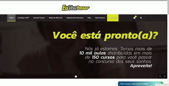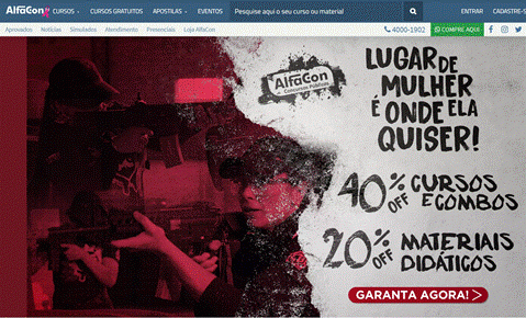 - Possui depoimentos em vídeo e texto de ex-alunos do curso e informações sobre quantidade de alunos aprovados em concursos.