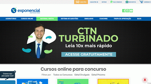 - Possui produtos separados por concursos, mas não possui assinatura do site. É oferecido em conjunto com a assinatura de outro site: o QConcursos.