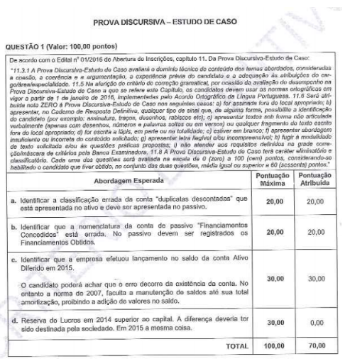 Para você ter uma noção de como funciona, veja o espelho de um Estudo de Caso aplicado para o cargo de AJ-Contabilidade no concurso do Tribunal Regional do Trabalho 20ª Região: