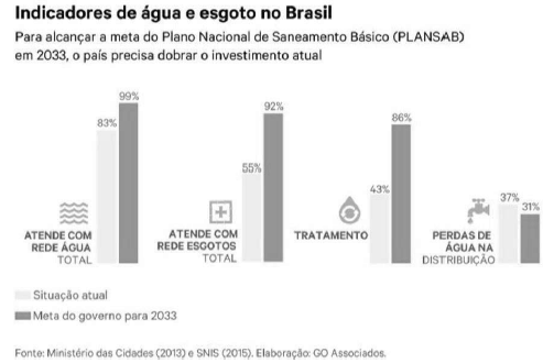 Desse modo, percebe-se que a privatização dos serviços de saneamento pode ser uma solução eficaz para melhorar a eficiência e cobertura no Brasil. Por isso, é importante que o governo estabeleça um marco regulatório claro e eficiente, que incentive a participação privada e garanta a qualidade e acessibilidade dos serviços para toda a população.
