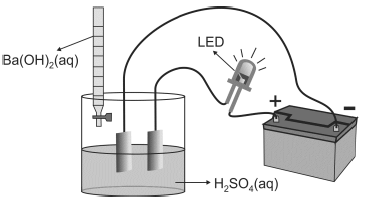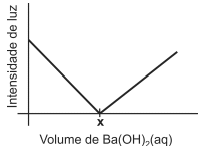 Nesse experimento, adicionou-se, gradativamente, uma solução aquosa de Ba(OH)2, de concentração 0,4 mol/L, à solução aquosa de H2SO4, medindo-se a intensidade de luz a cada adição.