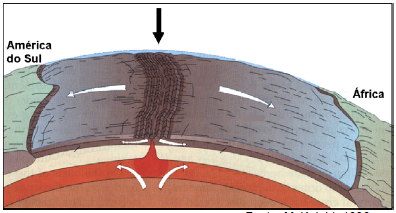 a) Identifique o relevo submarino, apontado pela flecha negra, na ilustração.