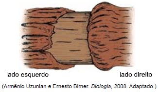 Um tempo após a extração de um anel completo (anel de Malpighi), o ramo de uma árvore apresentou a seguinte configuração: