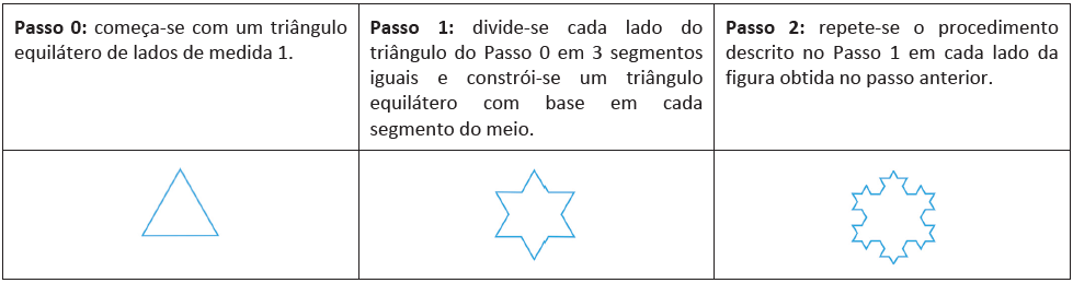 Os passos seguintes (Passo 3, Passo 4, Passo 5, …) seguem o mesmo procedimento descrito no Passo 1, em cada lado da figura obtida no passo anterior. Considerando os passos descritos e os próximos passos, responda: