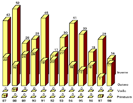 POLUENTES, SEGUNDO AS ESTAÇÕES DO ANO: 1987-1998