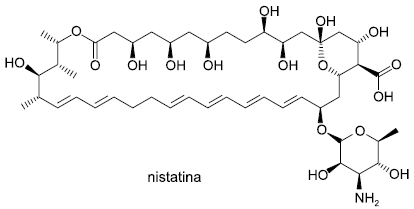 A fórmula representa a estrutura molecular da nistatina, princípio ativo de medicamentos usados no combate a infecções causadas por fungos.