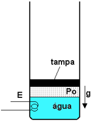 Um recipiente cilíndrico contém 1,5 L (litro) de água à temperatura de 40ºC. Uma tampa, colocada sobre a superfície da água, veda o líquido e pode se deslocar verticalmente sem atrito. Um aquecedor elétrico E, de 1800 W, fornece calor à água. O sistema está isolado termicamente de forma que o calor fornecido à água não se transfere ao recipiente. Devido ao peso da tampa e à pressão atmosférica externa, a pressão sobre a superfície da água permanece com o valor P0=1,00×105Pa. Ligando-se o aquecedor, a água esquenta até atingir, depois de um intervalo de tempo tA, a temperatura de ebulição (100ºC). A seguir a água passa a evaporar, preenchendo a região entre a superfície da água e a tampa, até que, depois de mais um intervalo de tempo tB, o aquecedor é desligado. Neste processo, 0,27 mol de água passou ao estado de vapor.