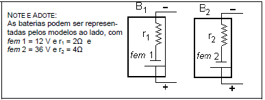 a) O valor da corrente I1, em ampères, que percorre o resistor R, durante o tempo em que a chave Ch1 permanece fechada.