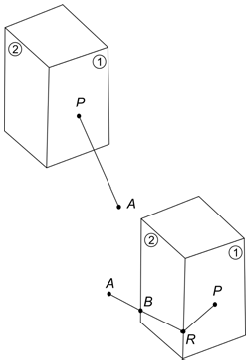 , mantendo-se esticada e com a extremidade A no solo, até que a corda toque duas arestas da face
