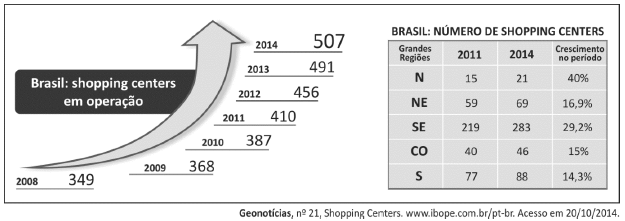 b) duas tendências da distribuição geográfica dos shopping centers pelas diferentes regiões brasileiras, considerando o crescimento no período 2011‐2014. Justifique sua resposta.