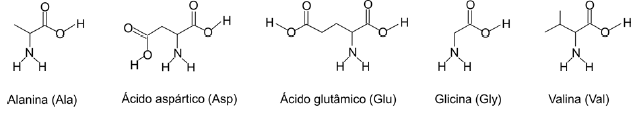 A ordem em que aminoácidos se ligam para formar uma proteína é definida por tríades de bases, presentes no RNA mensageiro, cada uma correspondendo a um determinado aminoácido. Algumas dessas tríades, com os aminoácidos correspondentes, estão representadas na tabela da folha de respostas. Assim, por exemplo, a tríade GUU corresponde ao aminoácido valina.