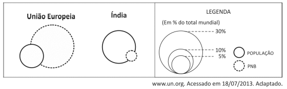 a) discuta a relação população/PNB na União Europeia e na Índia e compare as implicações sociais passíveis de serem inferidas dessas informações;