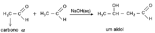 Essa reação, chamada de reação aldólica, ocorre com aldeídos e cetonas que possuem pelo menos um átomo de hidrogênio ligado ao átomo de carbono α em relação ao grupo carbonila.