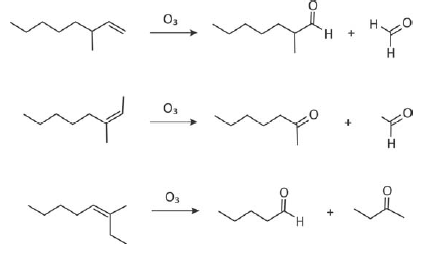 O químico observou então que a ozonólise da amostra de pineno resultou em apenas um composto como produto.