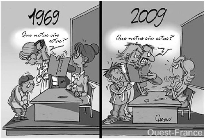 A charge reproduzida abaixo circulou pela rede Internet. Com base nas ideias sugeridas pela charge, redija uma dissertação em prosa, na folha a ela destinada, argumentando em favor de um ponto de vista sobre o tema. A redação deve ser feita com caneta azul ou preta.
