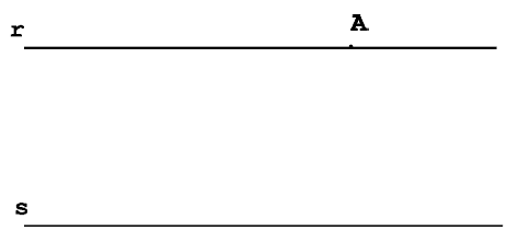 a) Dadas as retas paralelas r e s e um ponto A em r, construa um triângulo equilátero com um vértice em A, outro vértice em r e o terceiro vértice em s.