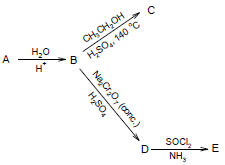 Sabendo que a molécula A é um hidrocarboneto com massa molar 28 g/mol, determine as estruturas dos compostos A a E no esquema de reações abaixo: