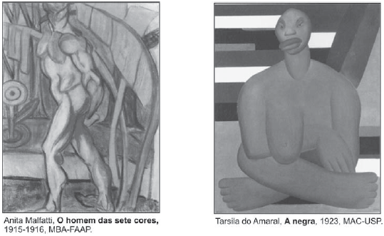 Examine estas imagens, que reproduzem, em preto e branco, dois quadros da pintura brasileira.
