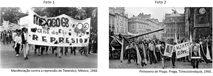 b) Explique o protesto relacionado à chamada Primavera de Praga, ocorrida na Tchecoslováquia, em 1968 (foto 2).