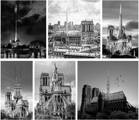 Fonte: https://www.caubr.gov.br/catedral-notre-dame-franca-anuncia-concurso-de-arquiteturapara- reconstruir-torre/. Publicado em 17/04/2019. Adaptado. Acessado em 20/07/2019. Fonte das imagens: https://internacional.estadao.com.br/noticias/geral,de-vista panoramica-ateto-de-vidro-saiba-como-os-arquitetos-estao-imaginando-a-nova-notre-dame,70002827347. Publicado em 13/05/2019. Acessado em 17/08/2019.