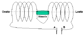 • O campo magnético B produzido por esta bobina, quando percorrida por uma corrente I, é dado por B = k I, em que k é uma constante de proporcionalidade.