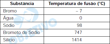 Na tabela abaixo são mostrados os valores de temperatura de fusão de algumas substâncias