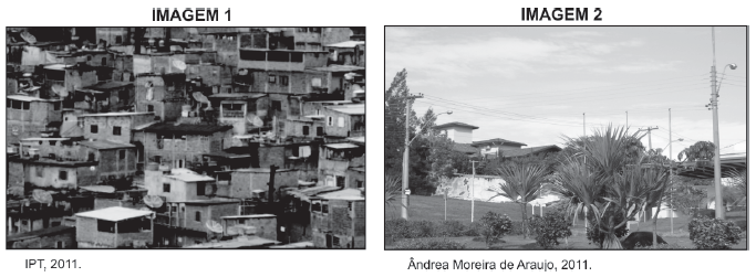 As imagens acima ilustram uma contradição característica de médios e grandes centros urbanos no Brasil, destacando-se o fato de que ambas dizem respeito a formas de segregação socioespacial. Considerando as imagens e seus conhecimentos, identifique e explique