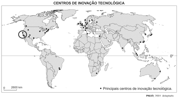 b) identifique e caracterize o conjunto de centros de inovação tecnológica destacado na porção sudoeste dos Estados Unidos.