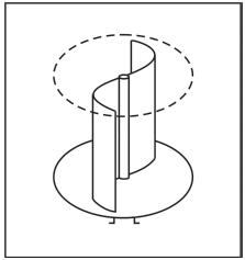 Um pequeno cata-vento do tipo Savonius, como o esquematizado na figura ao lado, acoplado a uma bomba d’água, é utilizado em uma propriedade rural. A potência útil P (W) desse sistema para bombeamento de água pode ser obtida pela expressão P = 0,1 x A x v3, em que A (m2) é a área total das pás do cata-vento e v (m/s), a velocidade do vento. Considerando um cata-vento com área total das pás de 2 m2, velocidade do vento de 5 m/s e a água sendo elevada de 7,5 m na vertical, calcule
