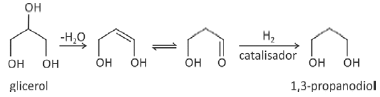 a) Na página de resposta, complete o esquema que representa a formação do 1,2 propanodiol a partir do glicerol.