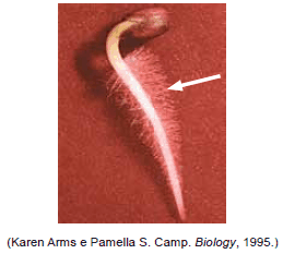 A imagem representa a formação de uma raiz durante o fenômeno da germinação.