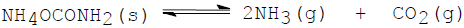 a) Um recipiente de 2 L, evacuado, contendo inicialmente apenas carbamato de amônio na quantidade de 4 x 10-3 mol foi mantido a 20ºC até não se observar mais variação de pressão.
